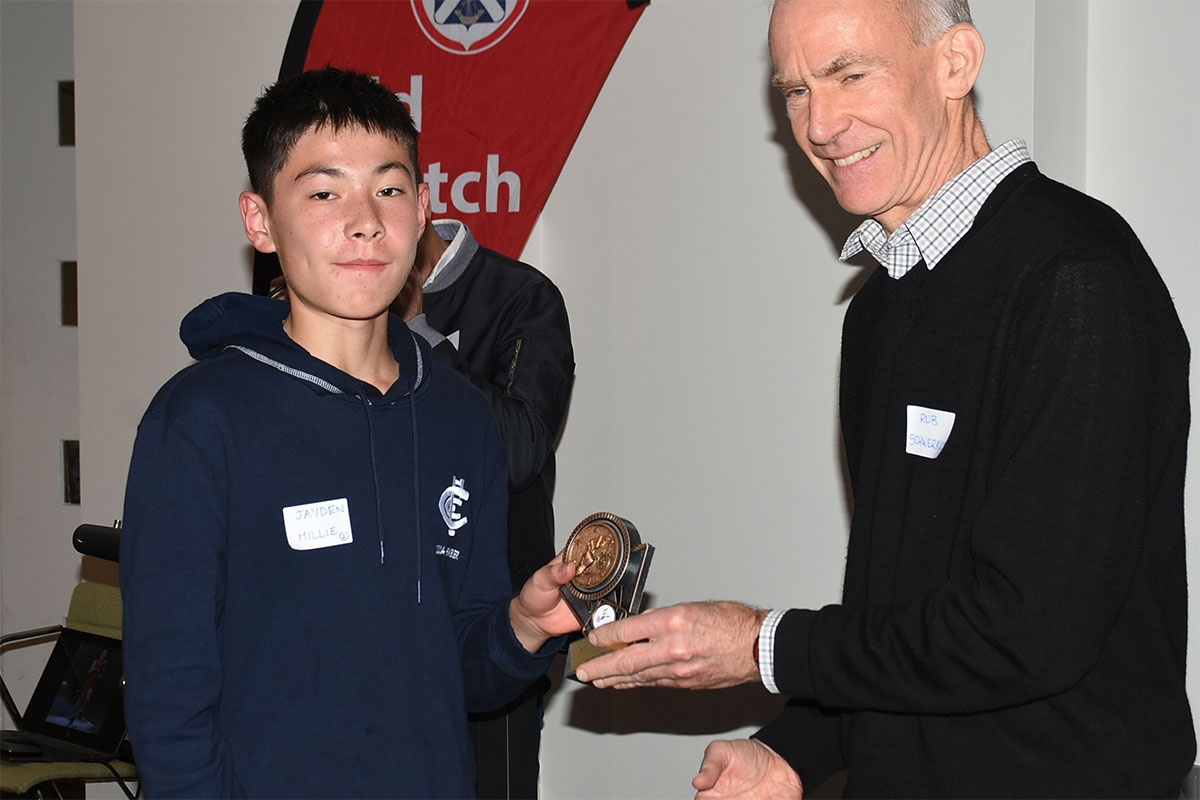 In parallel with the parents/carers and partners we then had our two amazing club coaches who have supported our club and athletes – Gregor Evans and David Lightfoot. Both Gregor and David volunteer their time starting off with the school athletes on a Tuesday and Thursday afternoon before making their way over to Righetti Reserve at 4:30-5pm to coach those members not associated to the school. Their time and dedication with attending training and supporting our athletes at AVSL, Specialist meets, and the various championship events has seen the club win a Premiership, a number of individuals achieve PB, make finals, finish top 3 with a medal, achieve qualification to National T&F Championships to compete against the best of the best. I think it would be appropriate now if I can ask the athletes in the room to put their hands together to not only thank the coaches for their support but also to your parents/carers and supporters as well.